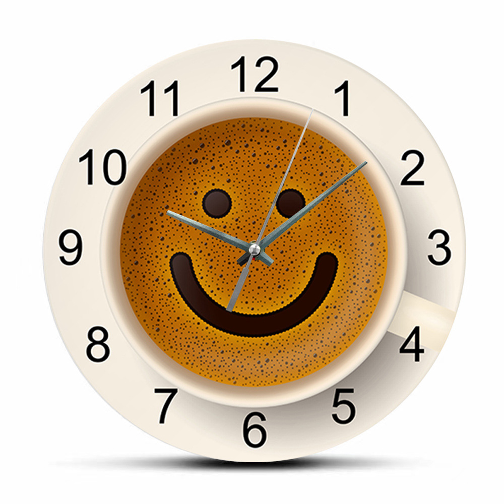 コーヒーのテーマの掛け時計の円形の静音の喫茶店のホールの時計の北欧の創意の家の装飾の壁の時計は国境を越えます。