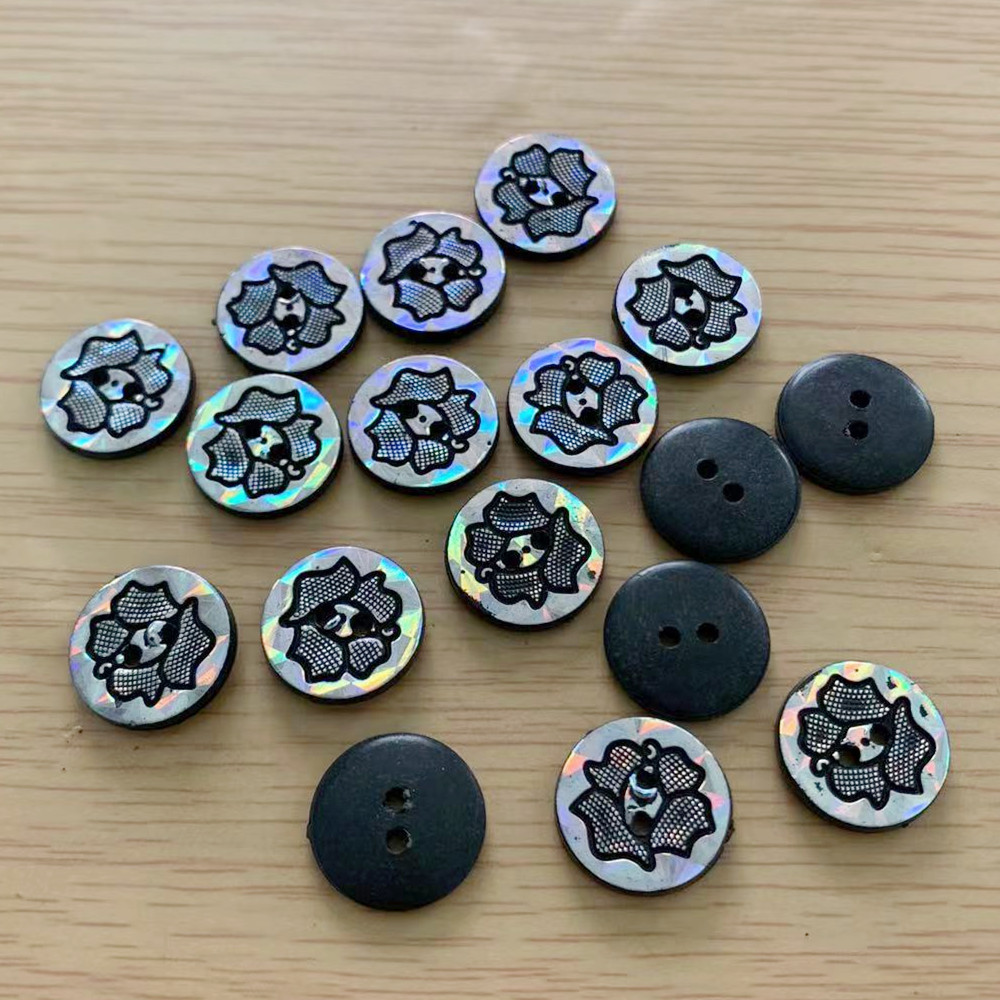 プラスチックラウンド2アイブラックレーザーフェイスパターンシャツボタンセーターボタン