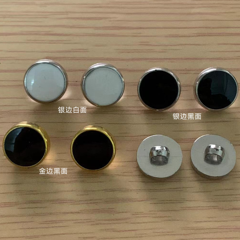 メッキ銀辺黒色平面点油ボタン服装補助材料を供給する