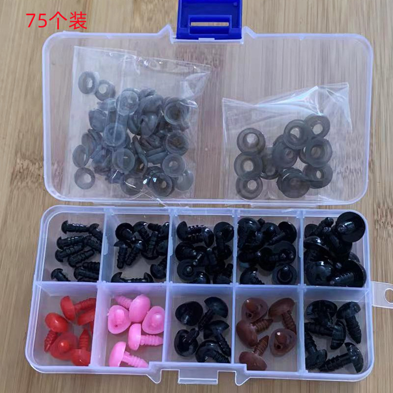 小口の卸売りの箱の中のシミュレーションのぬいぐるみの目の部品は国境を越えて黒い三角形の目のビーズの75個を詰めます。