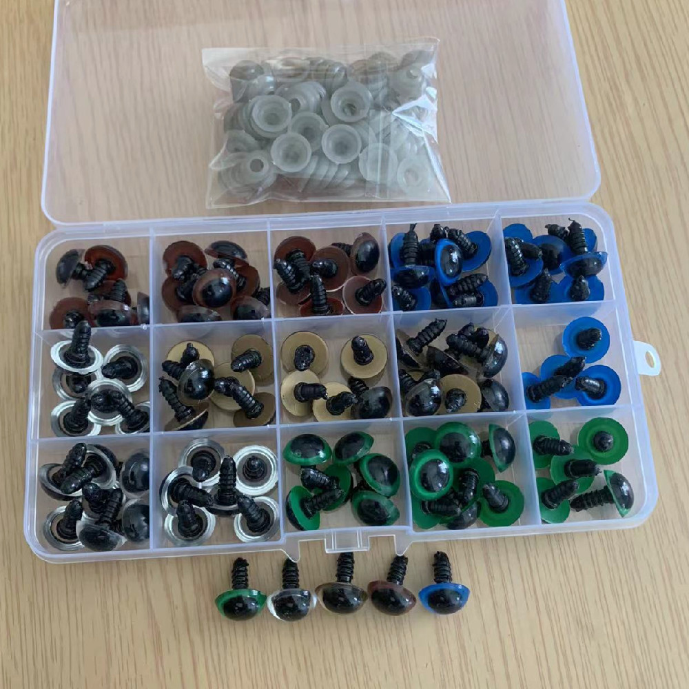 DIY手作り14mm箱入り模擬プラスチック製アートアイ、漫画風カラフルネジ穴付き動物の目、人形の目