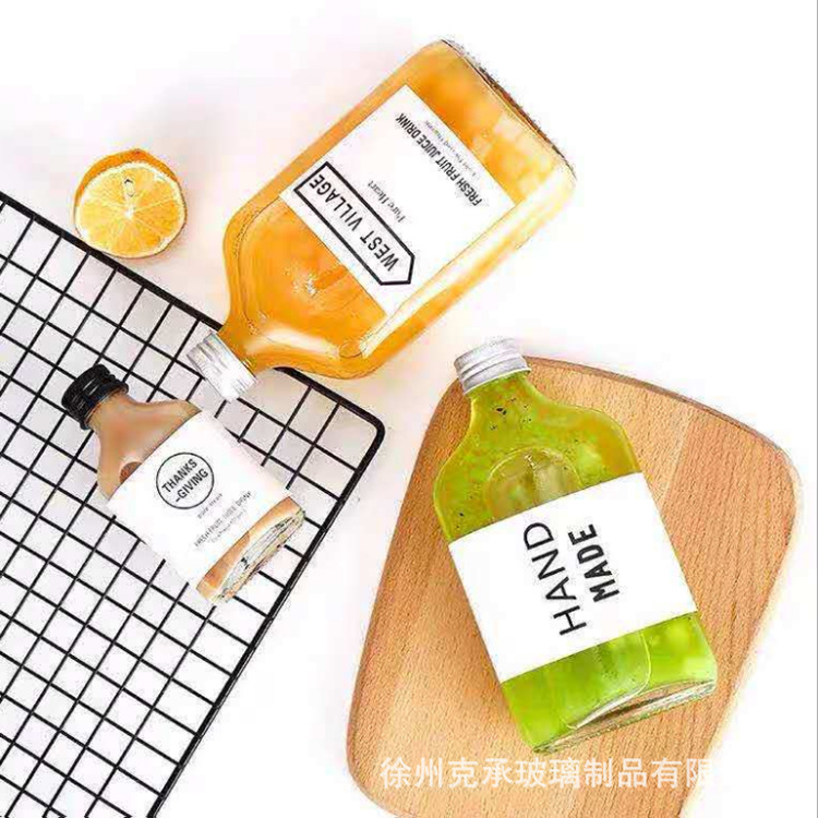 フラットボトル斜め肩透明飲料瓶ネットレッド新コーヒーガラス瓶白瓶ミルクティー飲料瓶