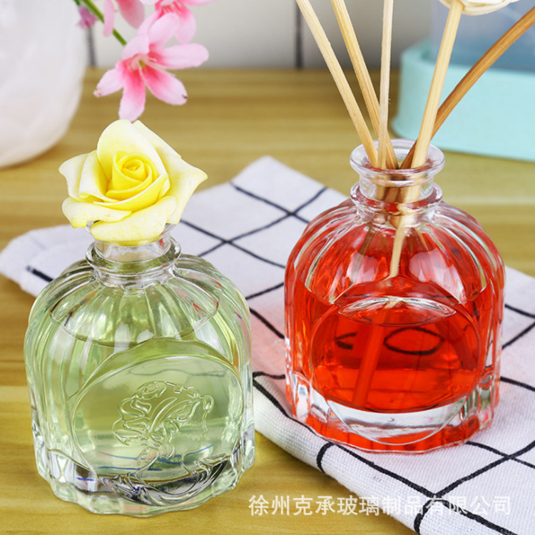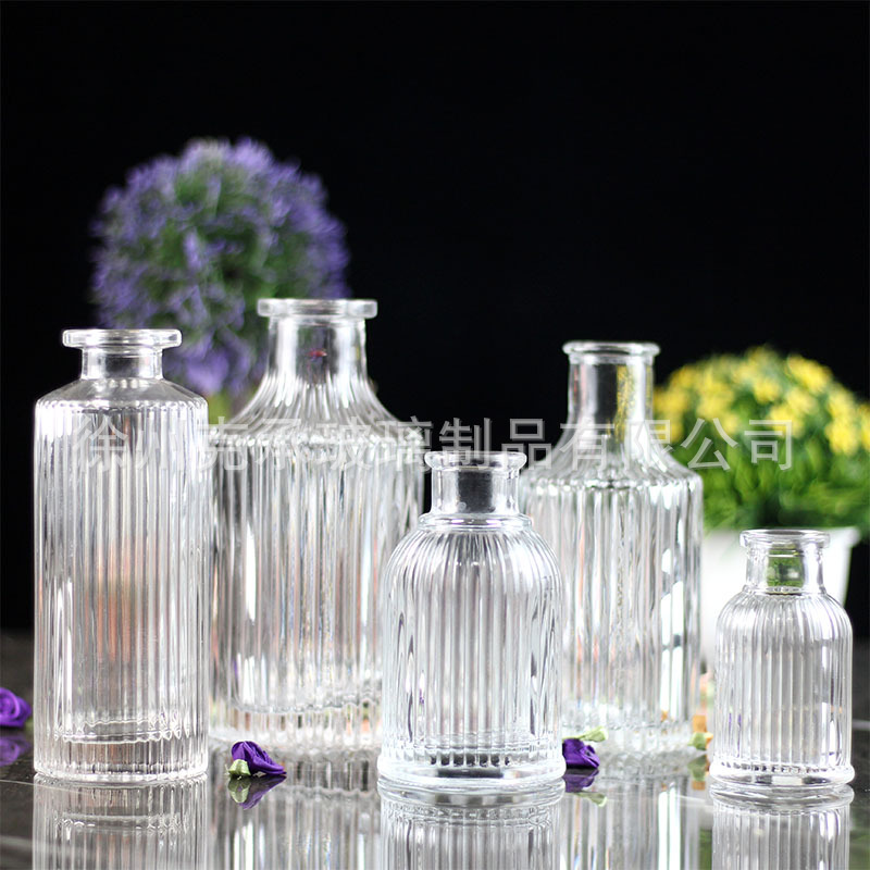 卸売り香薫瓶ガラス晶白料透明ガラス拡香瓶縦縞香薫瓶円柱ローマ香薫瓶