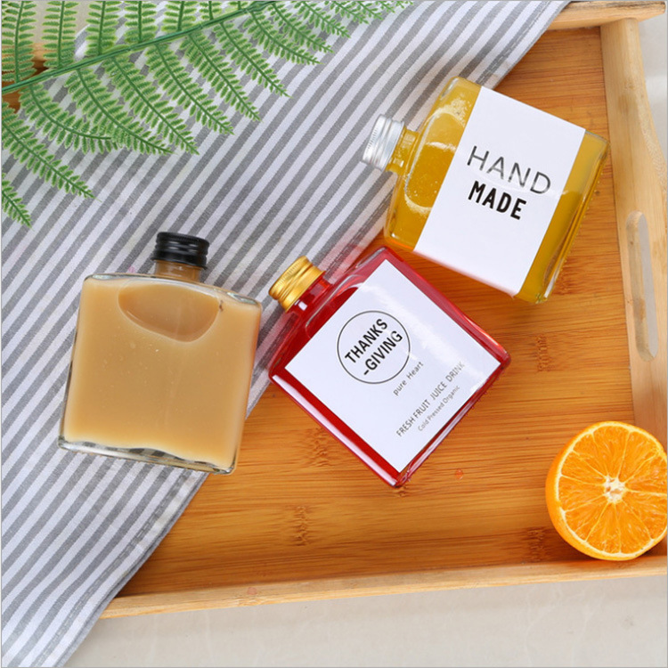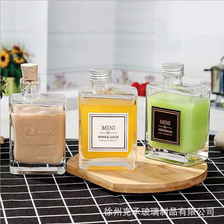 ネットの赤い新型の飲み物の瓶のコーヒーのガラス瓶の平たい酒の瓶の透明な果実の酒の瓶のテイクアウトの分注の瓶