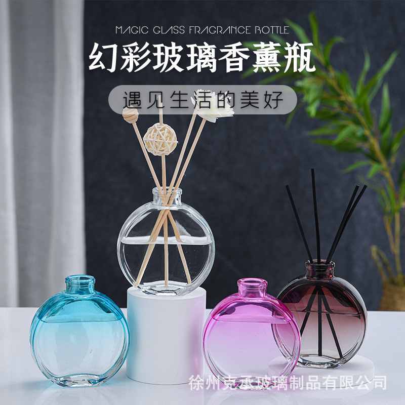 メーカーはアロマエッセンシャルオイルボトルガラス150mlのフラットな丸い香水の空の瓶を供給しています。