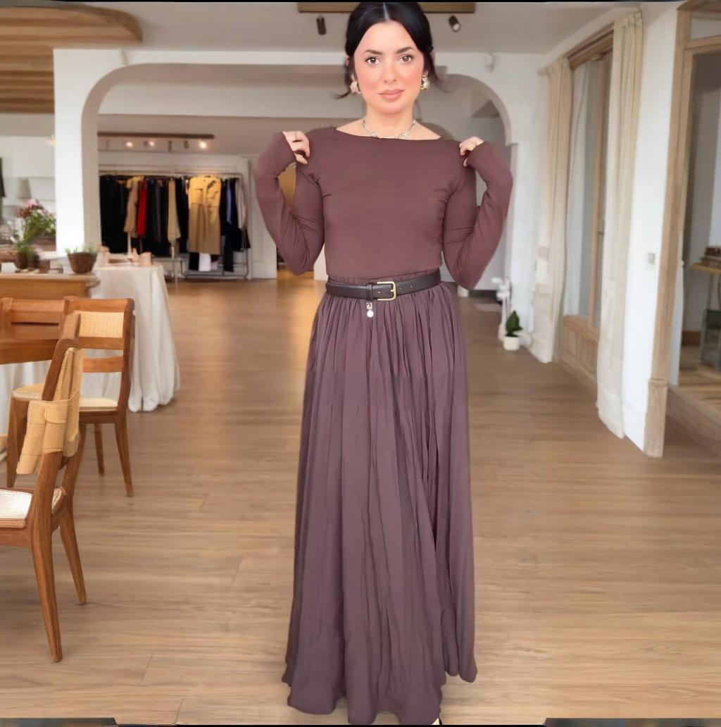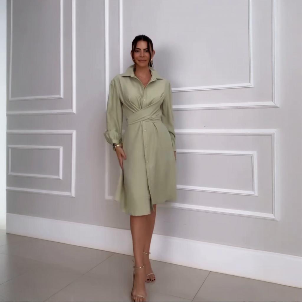 2025春の新型越境欧米の外国貿易の長袖の婦人服の純色の百ガウンのスカートの半身のスカートの気質のファッションのスーツ