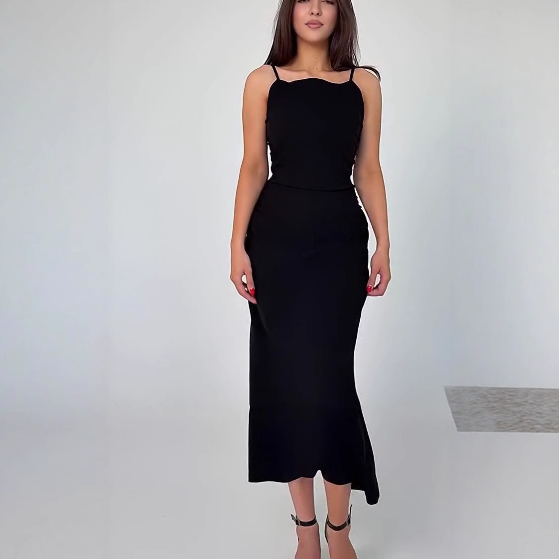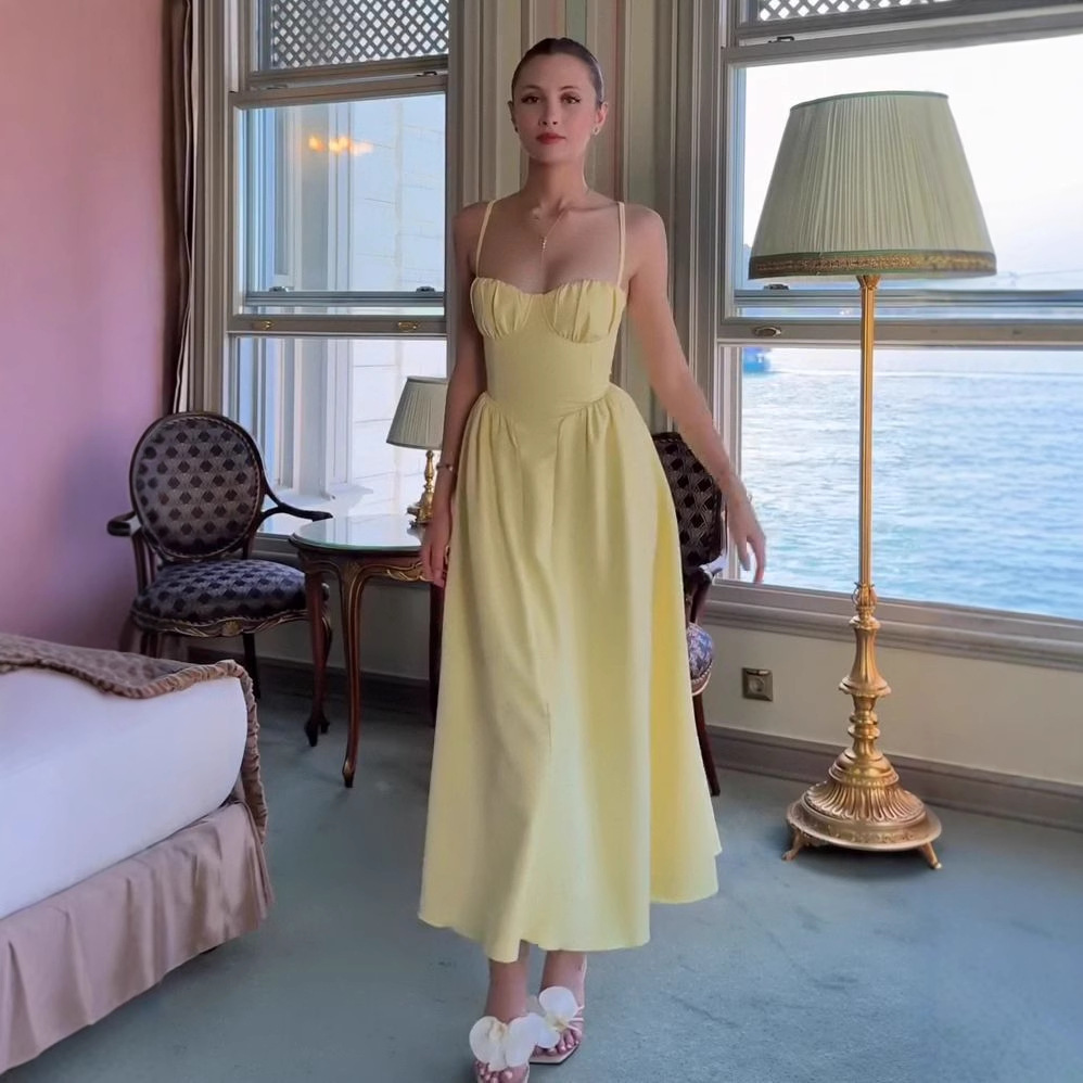 2025年夏のアマゾンの新しいヨーロッパとアメリカのクロスボーダーサスペンダーセクシーな無地の大きな裾スカート気質ウエストドレス