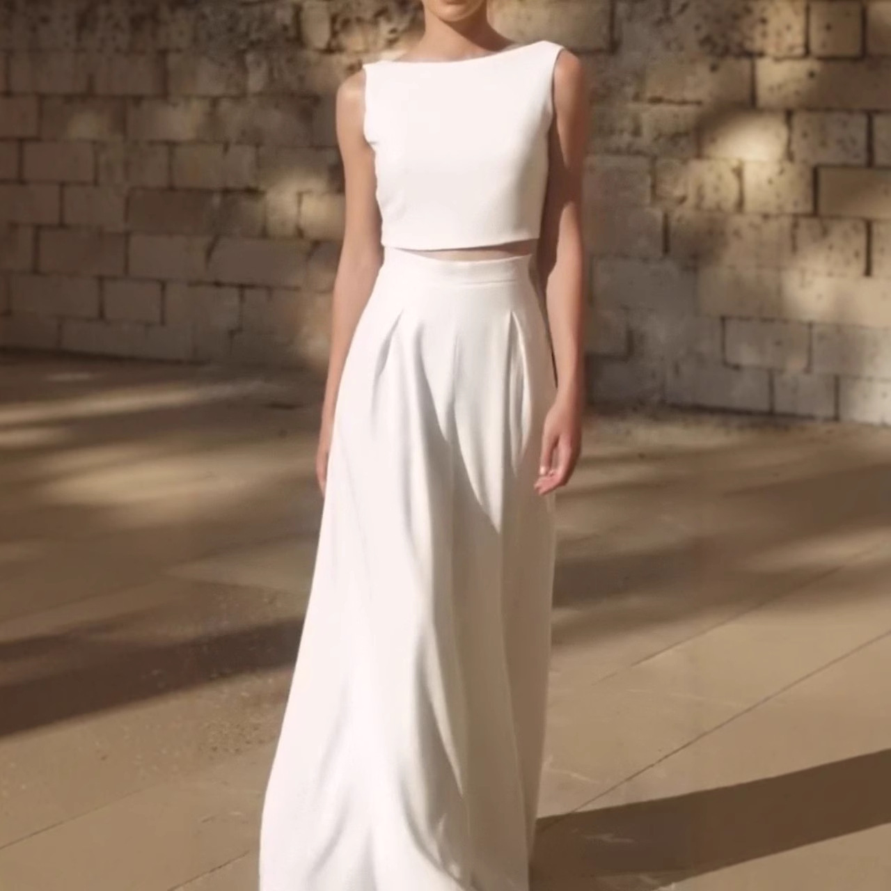 ヘプバーンスタイルフレンチスーツレディーススリムノースリーブTシャツ夏大きなスカートAラインスカート気質ツーピーススーツ