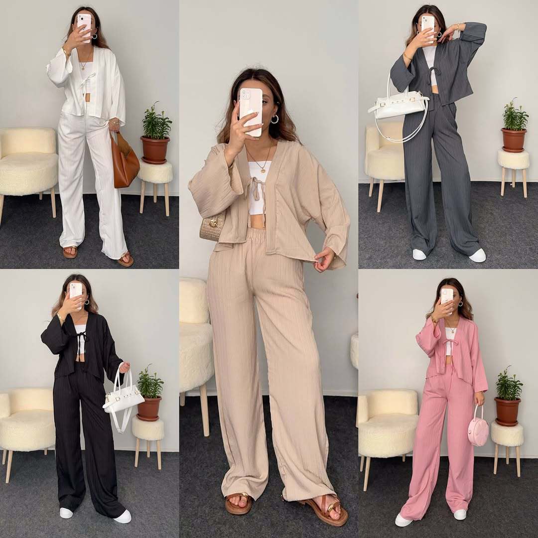 2025 夏の新しいクロスボーダーヨーロッパとアメリカの貿易婦人服レースアップ無地ワイドレッグパンツ気質通勤ファッションスーツ