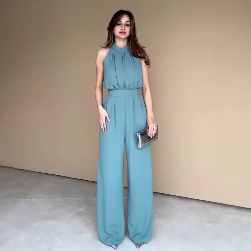 女性のためのハイエンドのプロフェッショナルスーツ 2025 夏の新しいファッションセレブ気質女神スタイルスリムワイドレッグパンツジャンプスーツ