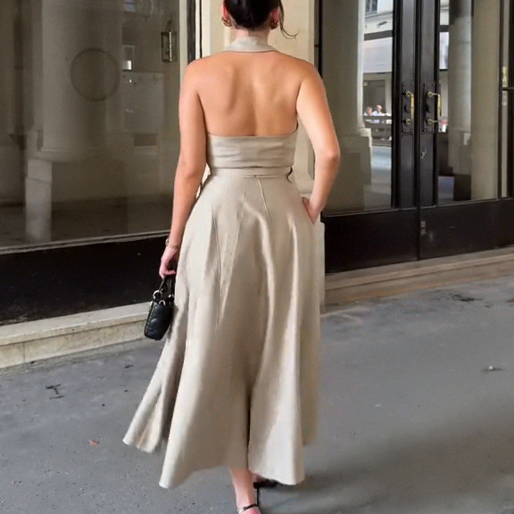 2025 夏のアマゾンの新しいヨーロッパとアメリカのクロスボーダー婦人服の気質サスペンダーセクシーなバックレスルーズウエストドレス