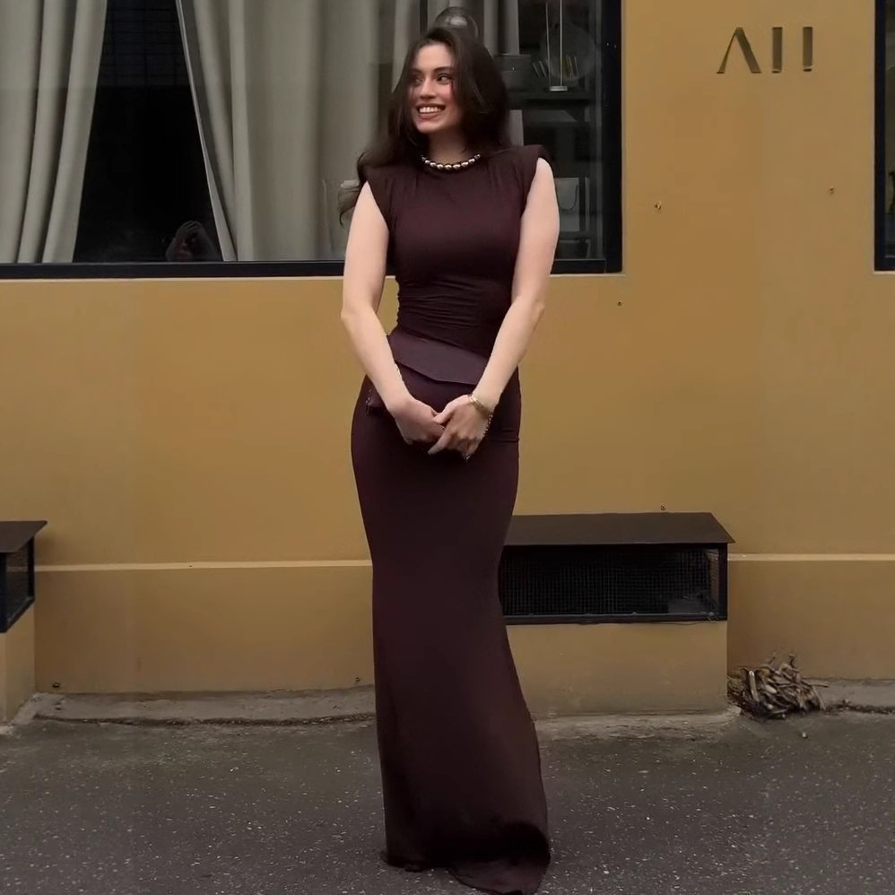 2025 夏のアマゾンの新しいヨーロッパとアメリカのクロスボーダー婦人服気質ノースリーブスリムソリッドカラー通勤ウエストドレス