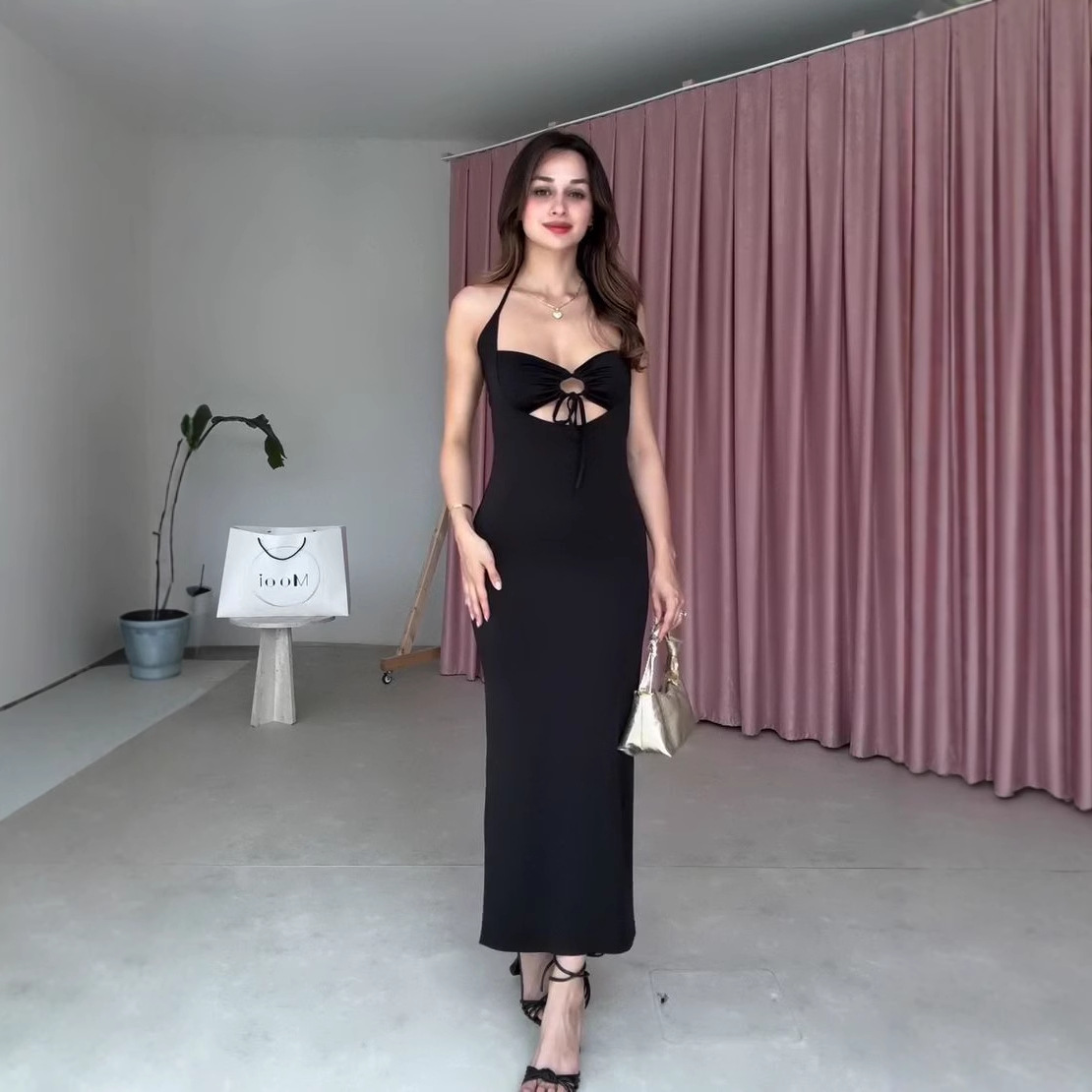 2025 夏のアマゾンの新しいヨーロッパとアメリカのクロスボーダー婦人服ホルターネックスリットソリッドカラーのセクシーな気質ウエストドレス