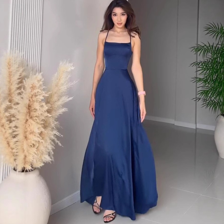 2025年夏アマゾン新作ヨーロッパとアメリカのクロスボーダーレディース気質ウエストサテンチューブトップ・ハイスリットドレス