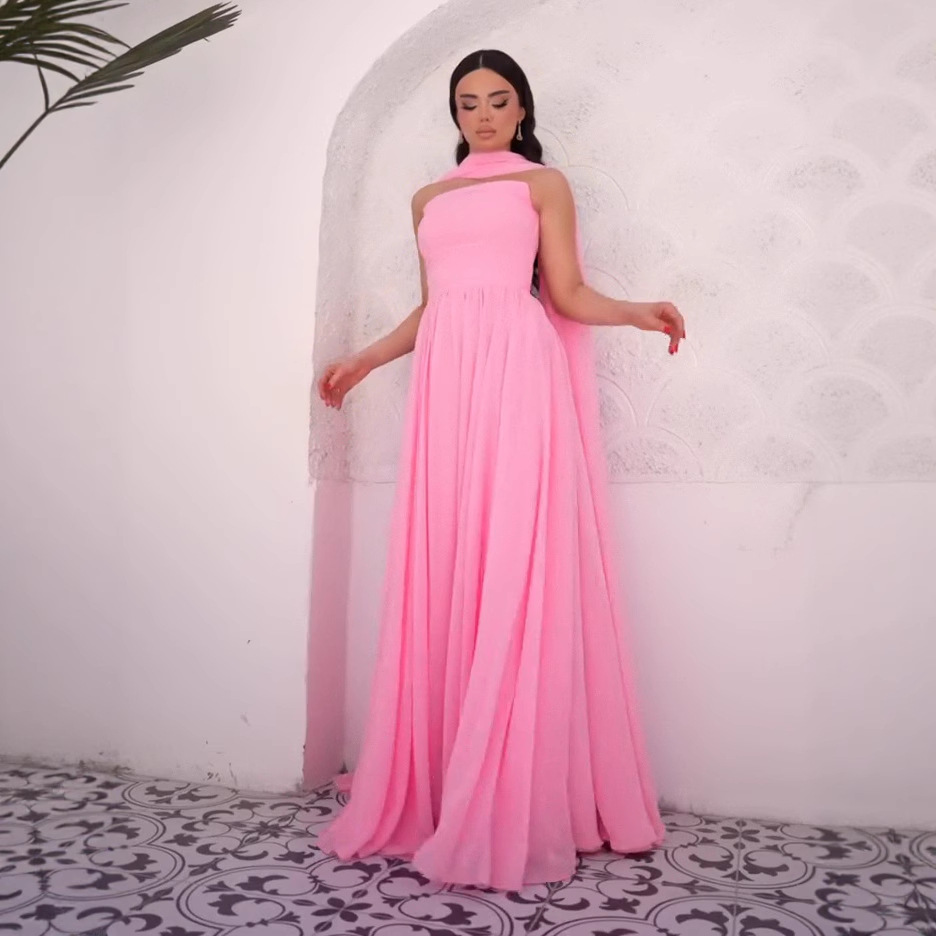 2025 夏のアマゾンの新しいヨーロッパとアメリカのクロスボーダーワンラインカラー無地の女性の気質ウエストドレスドレス