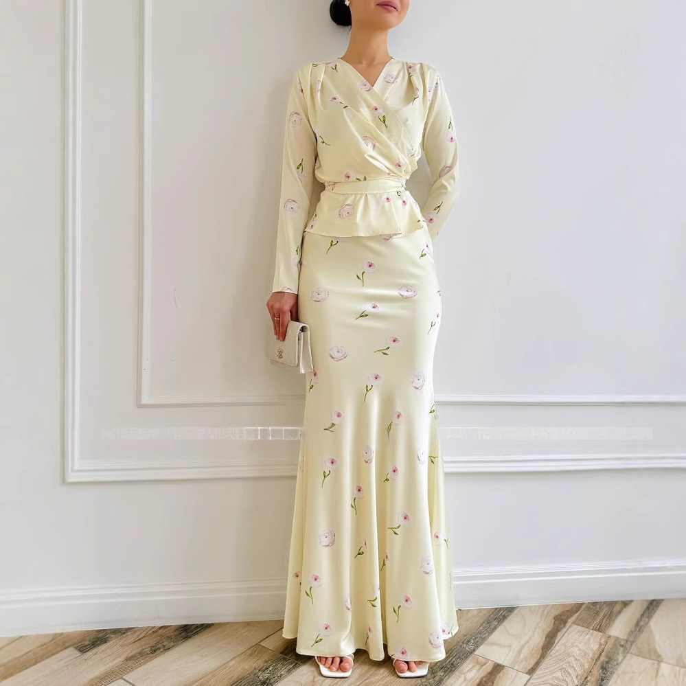 2025 アマゾン春の新作クロスボーダーヨーロッパとアメリカの貿易婦人服プリント長袖通勤スカートファッションスーツ