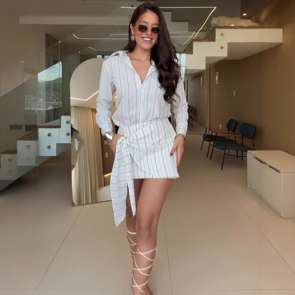 2025 夏の新スタイルクロスボーダーヨーロッパとアメリカの貿易婦人服通勤ファッション気質カジュアル長袖ストライプシャツ
