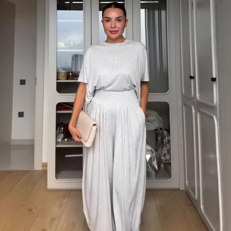 2025 夏の新スタイルクロスボーダーヨーロッパとアメリカの貿易婦人服通勤ファッション気質休暇スタイルカジュアルトップスワイドレッグパンツ