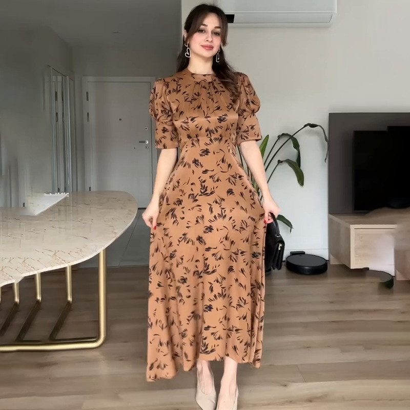 2025夏の新型半袖ハイウエストで痩せた丸首の花の気質がレトロなフレンチスカートのロングスカートのワンピースです。