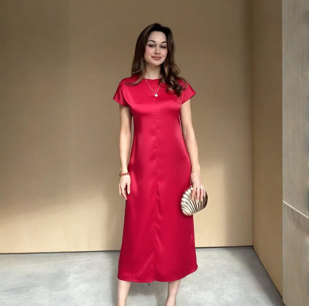 2025夏、欧米の国境を越えた対外貿易婦人服の純色半袖が痩せた丸首ドレス気質通勤ワンピース