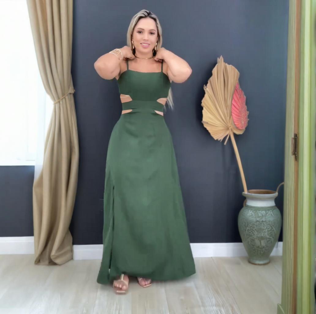 2025夏の新型欧米の国境を越えたストラップは、純色の女装セクシーなスリムなロングワンピースをフォークした