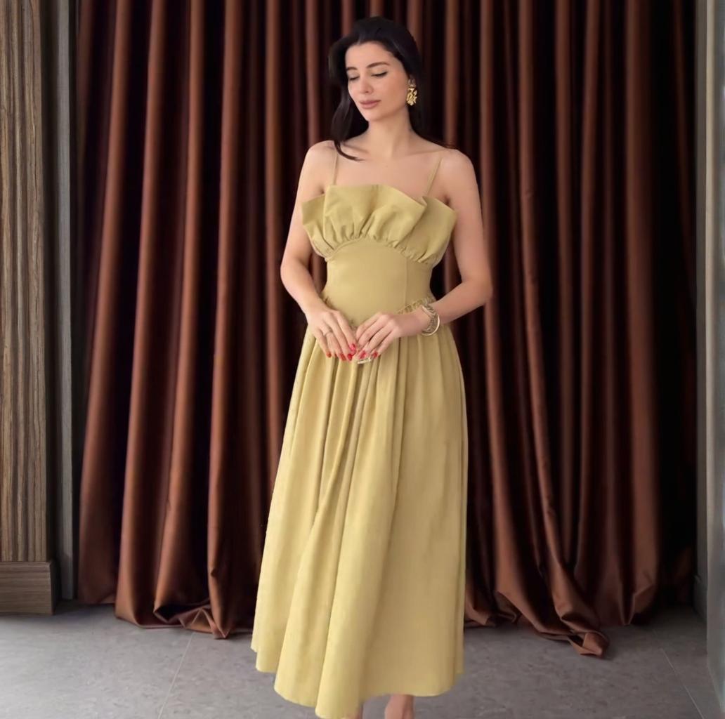 2025夏の新型欧米国境を越えたストラップ純色オープンフォーク優雅女装セクシー修身ワンピース