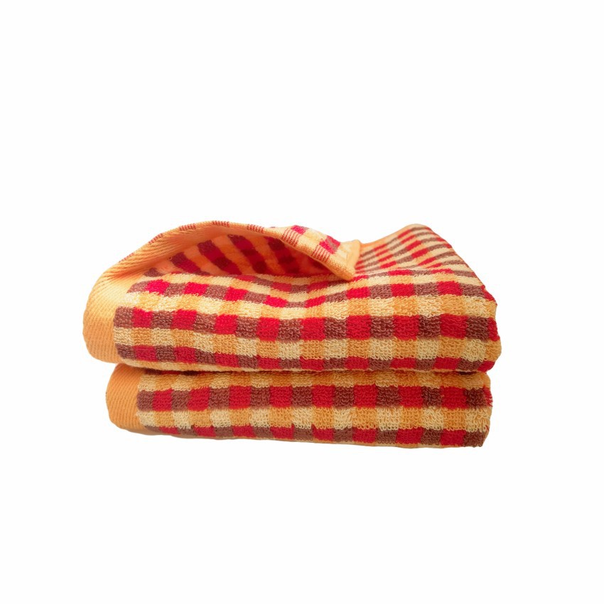 日系棉田園風色織多腕オレンジ色格子縞女性タオル家庭用フェイスタオル