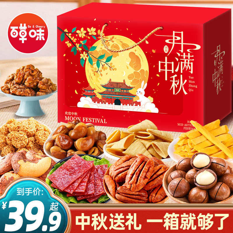 百草味中秋節ナッツギフトボックススナックギフトバッグ目上の人にプレゼントします。