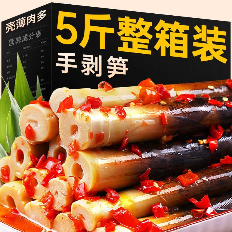 ネットの赤い手は筍を剥いて袋を開けてインスタント食品のピーマンの竹の子の先の手で筍の山椒の脆いタケノコの乾燥した酸っぱい筍のレジャーの間食の軽食をかき分けます。