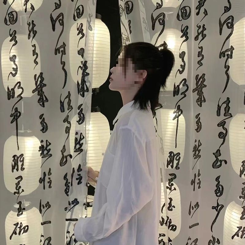 カーテンのカーテンは中国の書道文字の復古体風を撮影します。