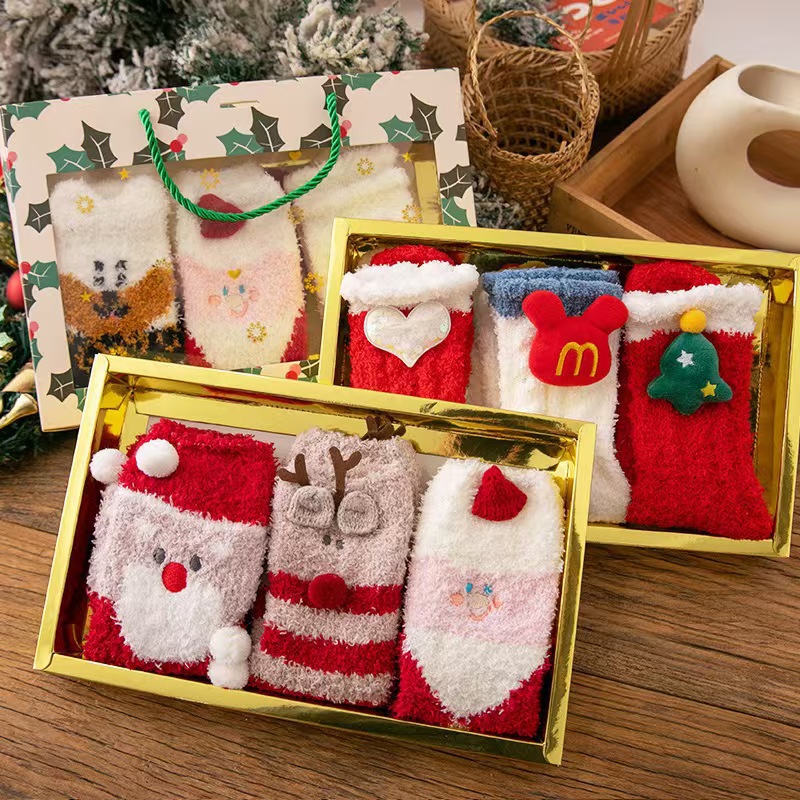 クリスマスの新型クロスボーダーの珊瑚の絨毯の靴下のかわいい装飾の掛け物のプレゼントの半分の絨毯の漫画の睡眠の中で筒の靴下