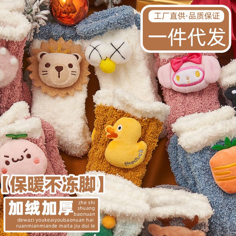 秋冬の暖かくてかわいい珊瑚の毛は厚い中筒の靴下の子供を厚くして、日本のinsの漫画の甘いストッキングに合います。