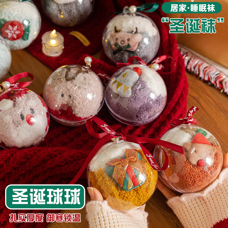 クリスマスボールソックスコーラルベルベットレディース冬防寒プラスベルベット厚みのあるスリーピングソックスクリスマスギフトミッドチューブソックス