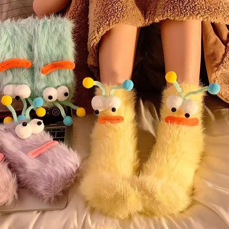 醜い萌えは靴下の女性のストッキングの秋冬の床の睡眠の靴下の家庭の漫画のぬいぐるみのかわいい保温のカップルの靴下をからかいます。