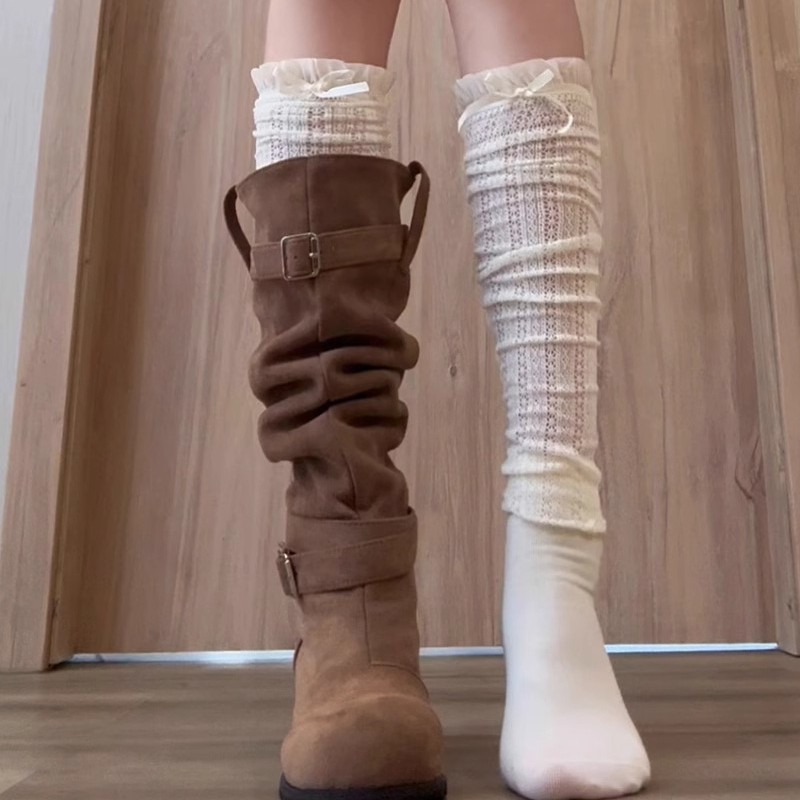 春夏の薄いタイプの膝の積み重ねの靴下のストッキングは膝の白い半筒の靴下のinsの潮のブーツの靴下の女性をつなぎ合わせます。