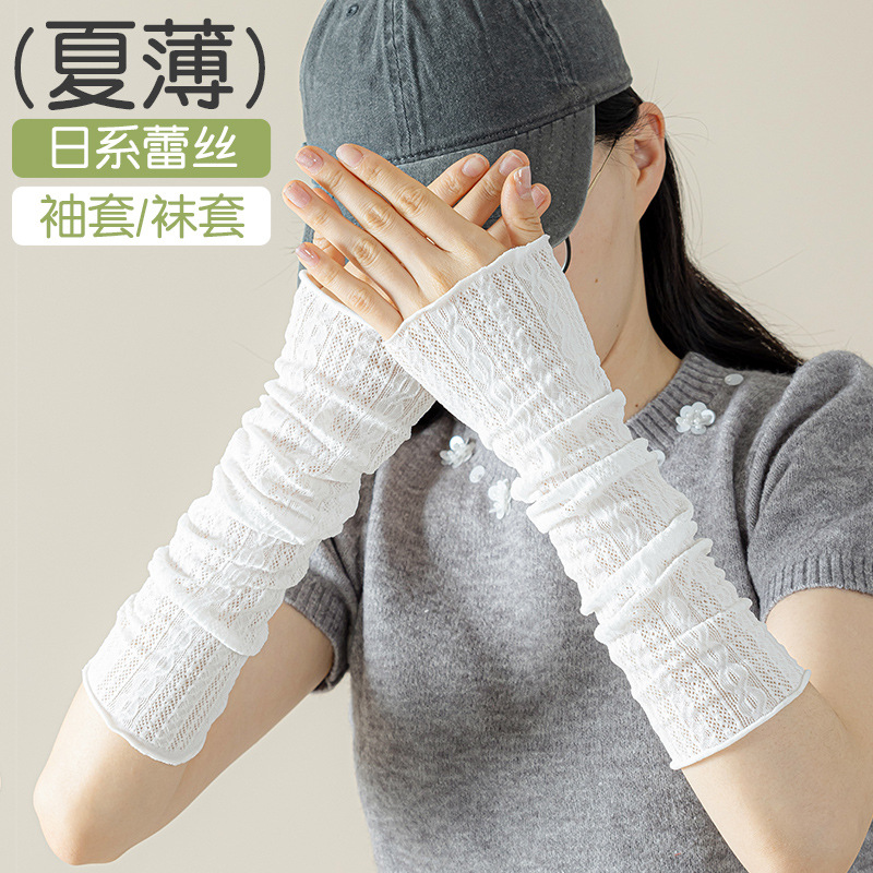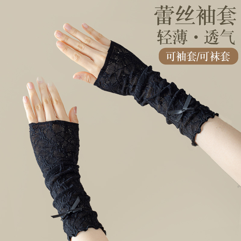 夏の超薄蝶結びレース日焼け止め袖カバーロリータ山靴下カバー韓国百合少女バレエ風