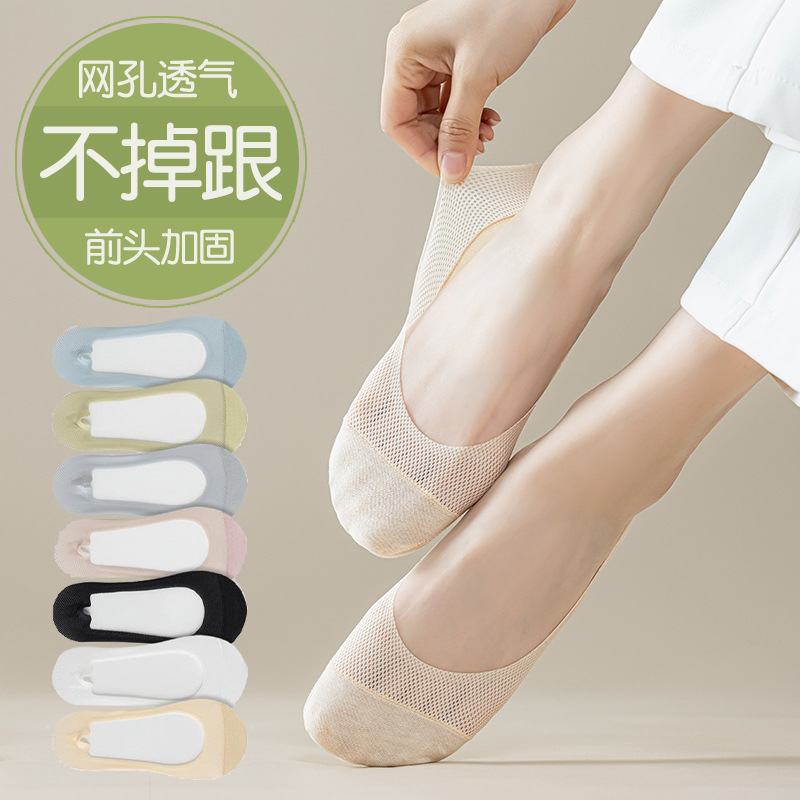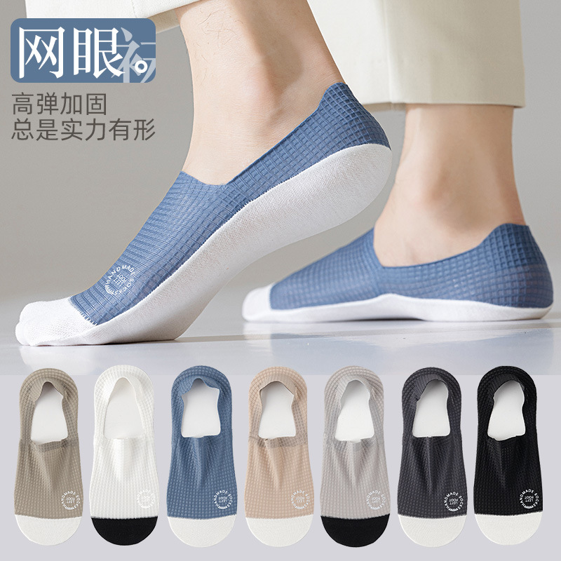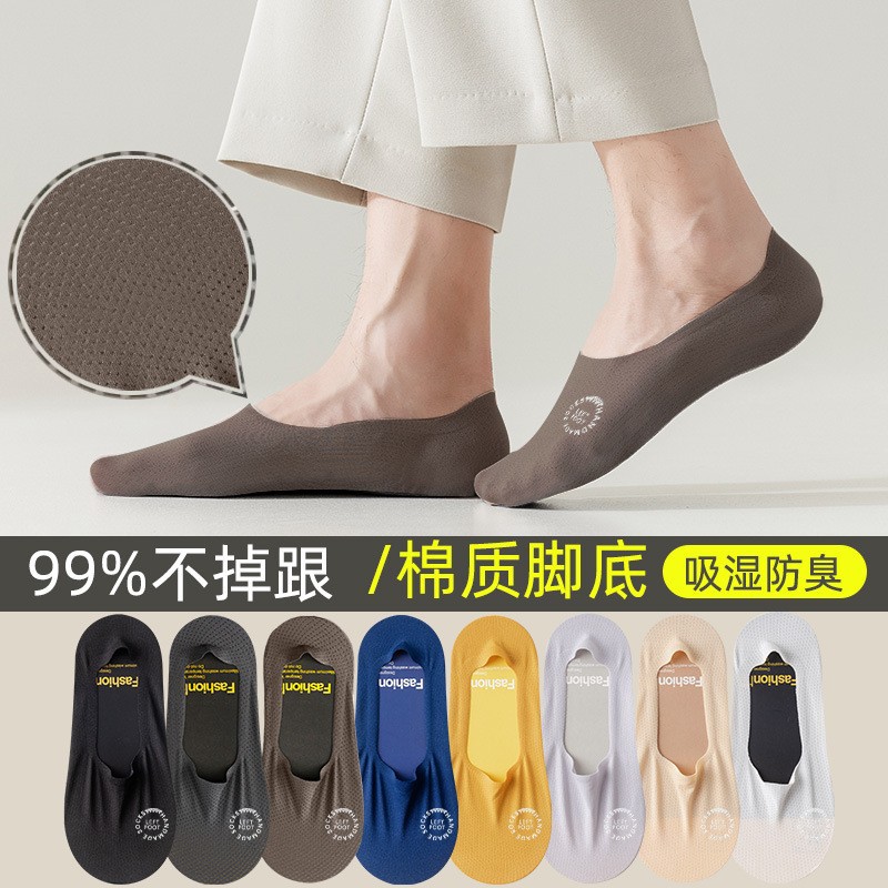 靴下の男性の靴下の夏の薄いタイプの氷の目の純色の見えない靴下の男性の綿の底の防臭の浅い口の滑り止めのソックス