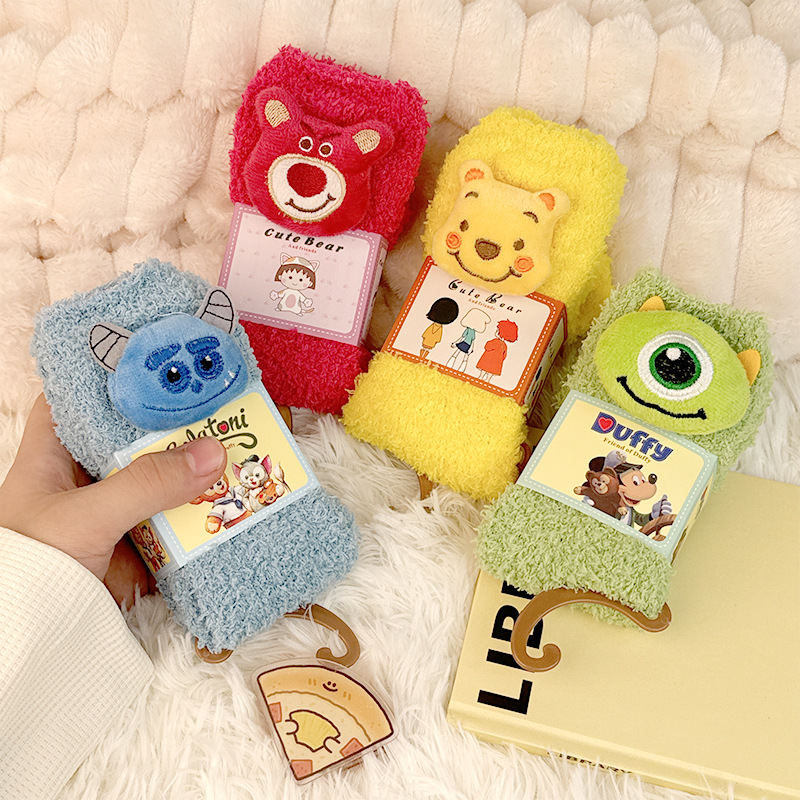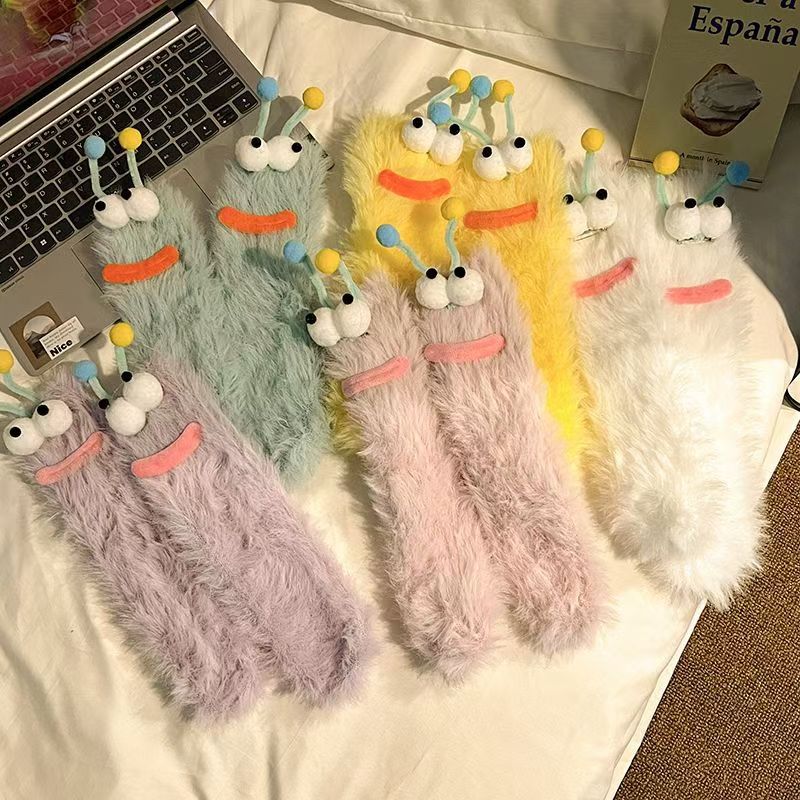 女性用ソックス、面白い表情、醜くてかわいいコーラルベルベットのスリーピングソックス、厚くて暖かい漫画のかわいいぬいぐるみミッドチューブフロアソックス