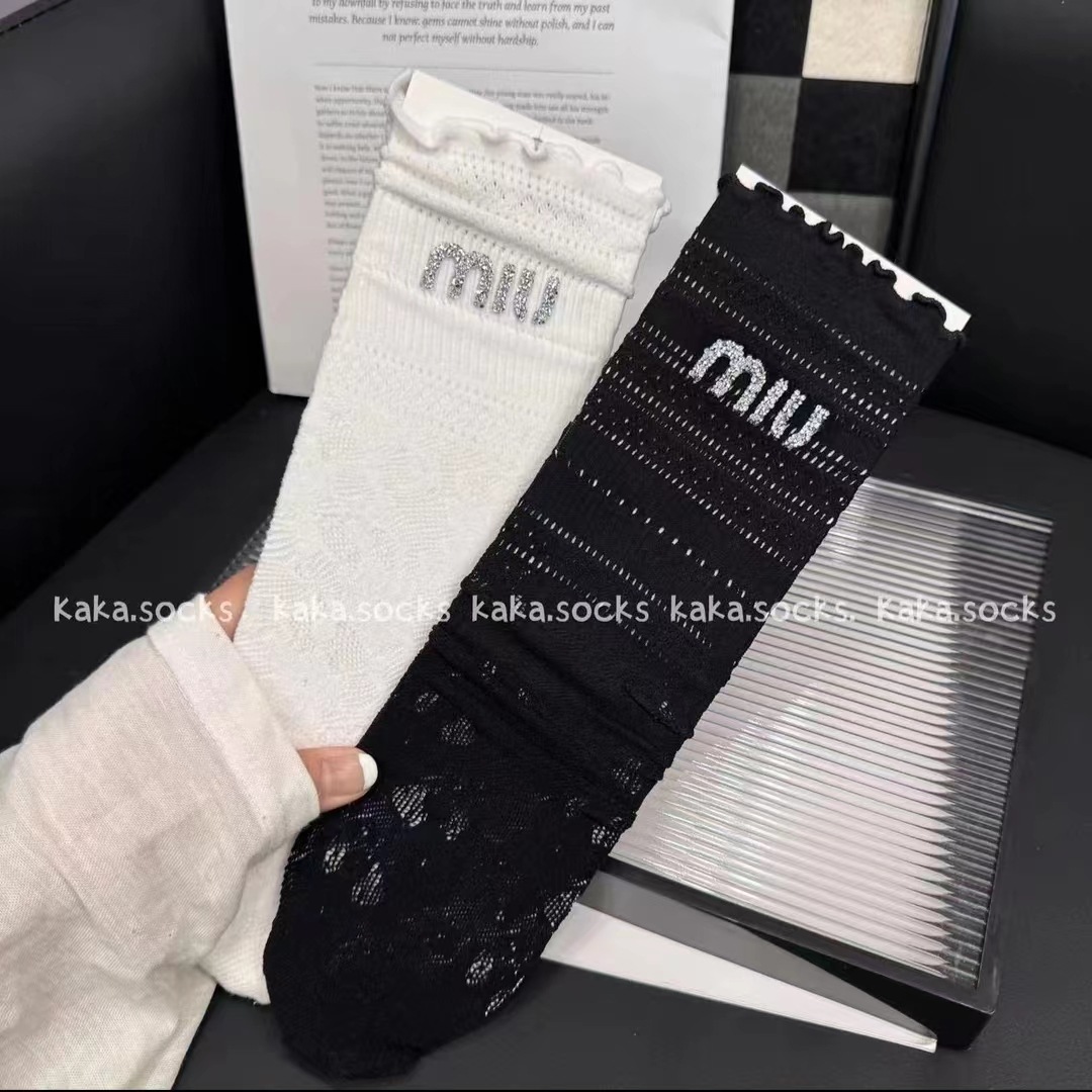 女性用ソックス、パーソナライズされたリッピング、春夏の薄いホットスタンピングレター、インターネットセレブの無地のフィッシュボーンソックス、ヨーロッパの商品、トレンディなミッドカーフソックス
