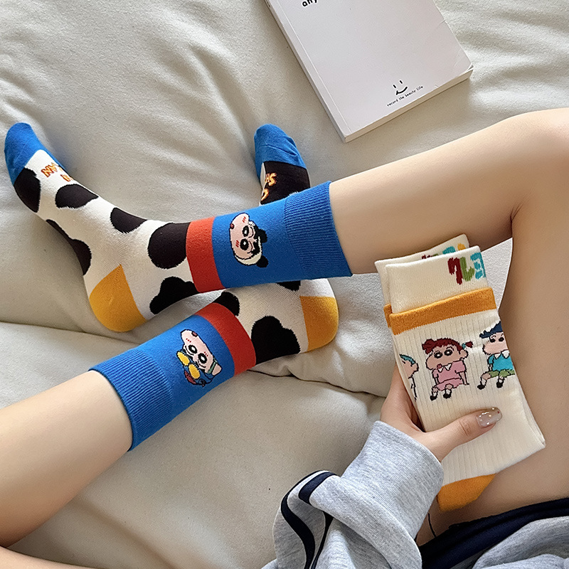 日本の靴下の子供の薄い金のかわいい元気の少女の学院の風の漫画のinsの風の子供の趣味の創意の中で靴下の卸売り