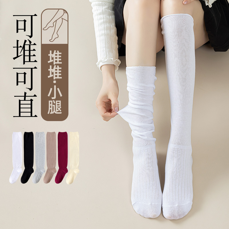 女性用リッピングソックス春と夏の薄いパーソナライズされたインターネットセレブソリッドカラーフィッシュボーンソックスヨーロッパ製ホットスタンピングレターイントレンディなミッドチューブソックス