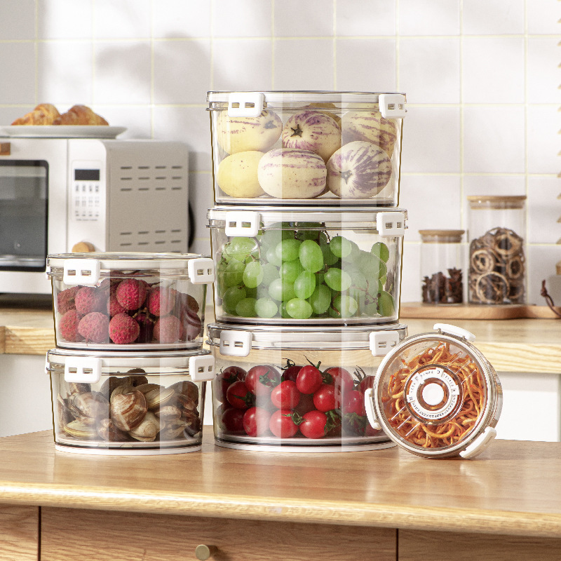 ラウンドタイミングクリッパーキッチン冷蔵庫果物と野菜の収納ボックスプラスチック透明密封スナックオーガナイザー密封缶
