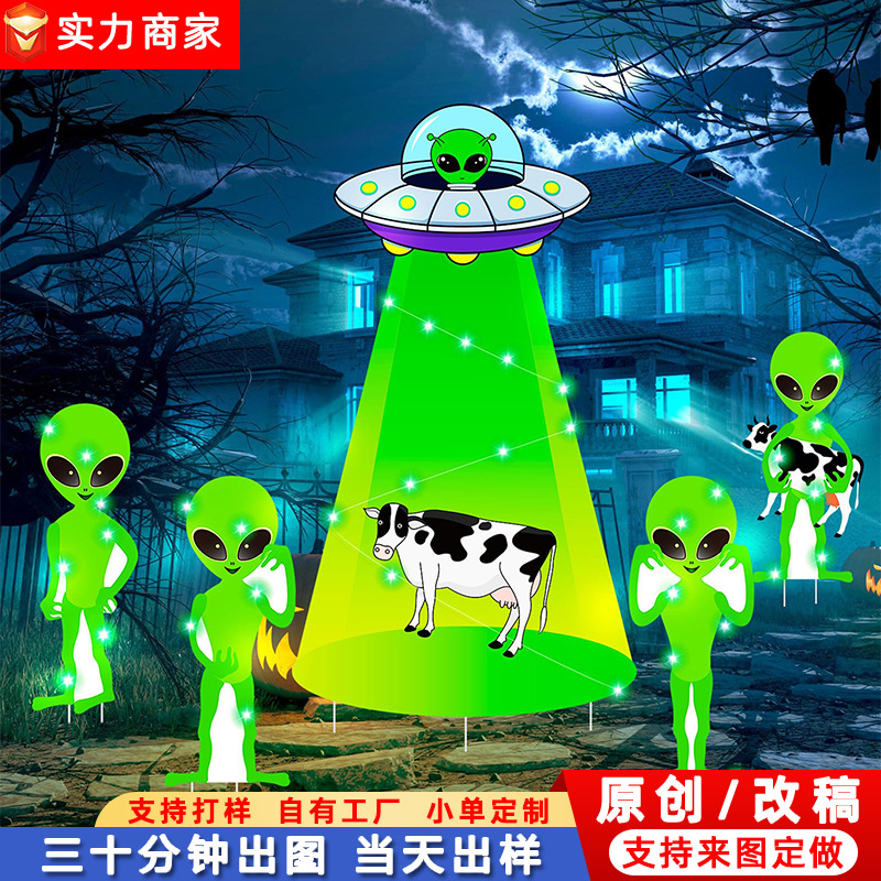 ハロウィンエイリアンヤードサイン発光大型ハロウィンヤード装飾屋外UFO牛芝生サイン