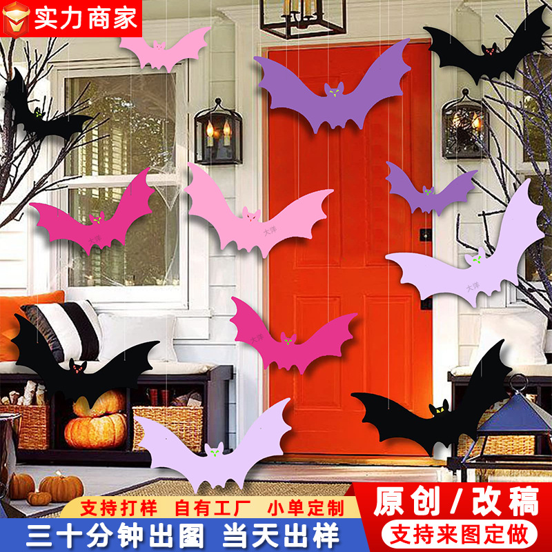 クロスボーダーオリジナルの新しいハロウィン吊り下げコウモリ子供用カラフルなかわいいコウモリ屋内外のホリデーパーティーの装飾