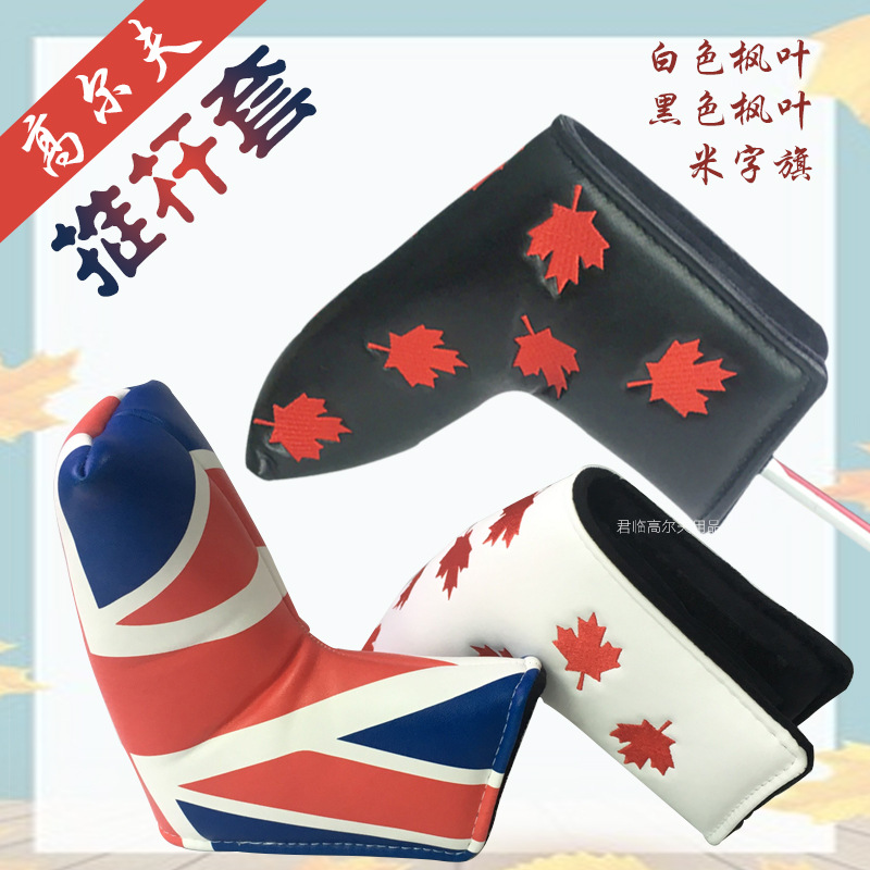 ゴルフl型パットカバー厚いぬいぐるみpu防水生地保護カバーカエデ刺繍米字旗カバー3色