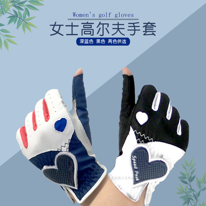 新しい女性のゴルフの手袋の韓国版の指の手袋のハート型のマジックは輸入のpuの滑り止めの耐摩耗の両手の2色を貼ります。