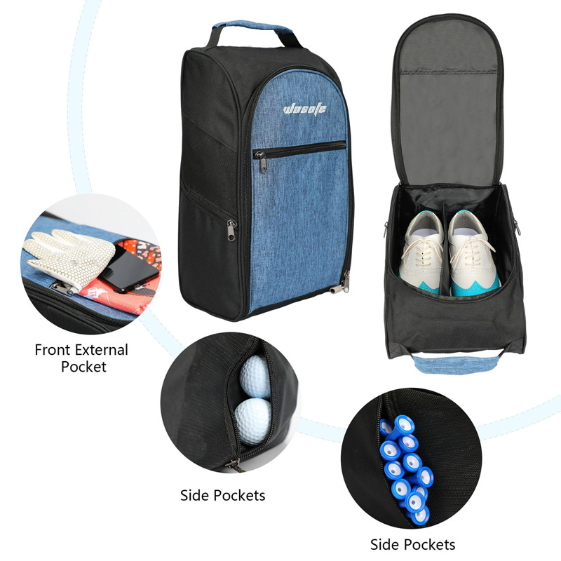 ゴルフシューズバッグ、ナイロン素材、ジッパー開閉、通気性メッシュホール、スポーツシューズ収納、便利なハンドバッグ