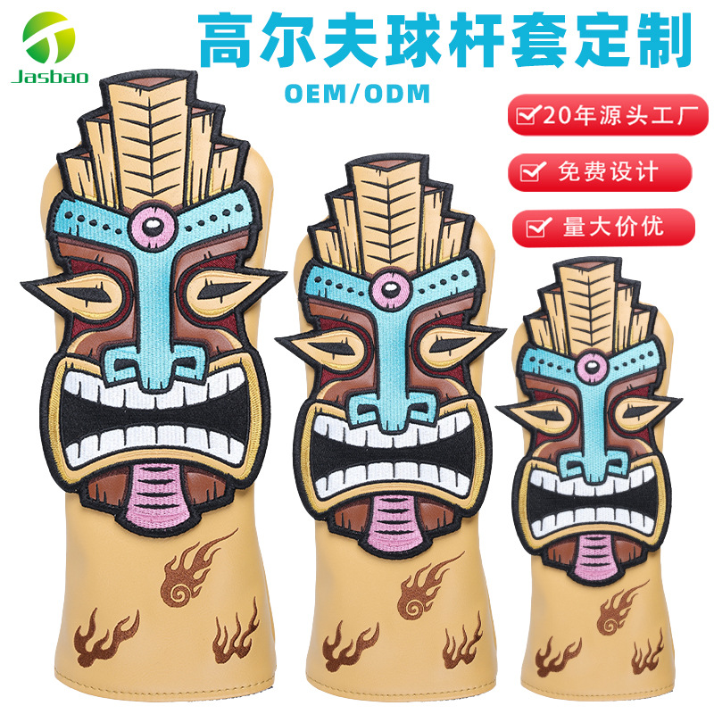 工場カスタマイズされたゴルフクラブカバーパターカバーゴルフ用品ハワイアンティキハットカバーPU刺繍クラブヘッドカバー
