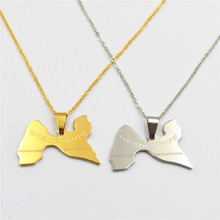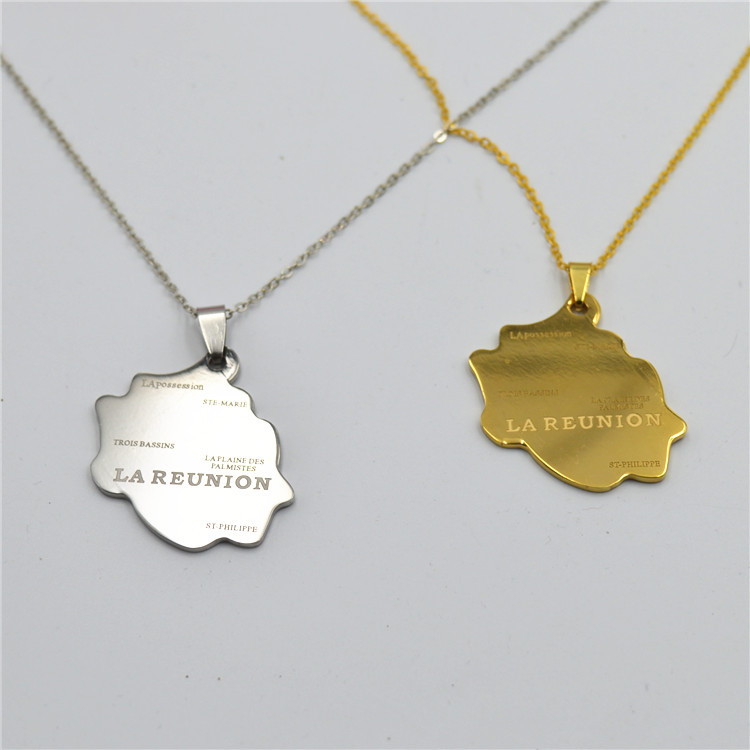 ステンレスネックレスペンダントフランス属観光地区アクセサリーネックレス留尼旺島地図クロスボーダーソース