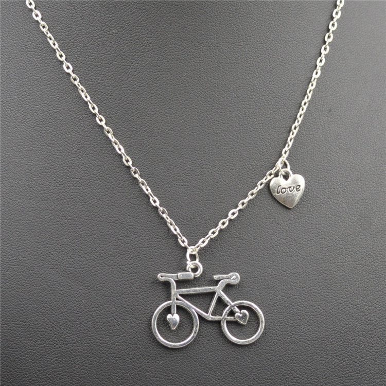 日韓スタイル小清新自転車桃心loveネックレス文芸範自転車カップルペンダント